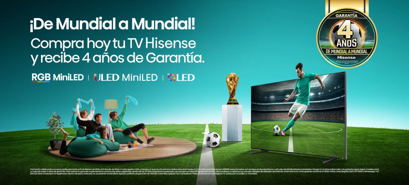 Como Patrocinador Oficial de la Copa Mundial de la FIFA 2026™, Hisense reafirma su compromiso con los hogares colombianos y presenta su nueva campaña “De Mundial a Mundial”, una iniciativa que ofrece hasta cuatro (4) años de garantía en televisores con tecnologías RGB-MiniLED, ULED MiniLED y QLED, permitiendo que los fanáticos vivan cada jugada con la confianza y respaldo de una marca global.