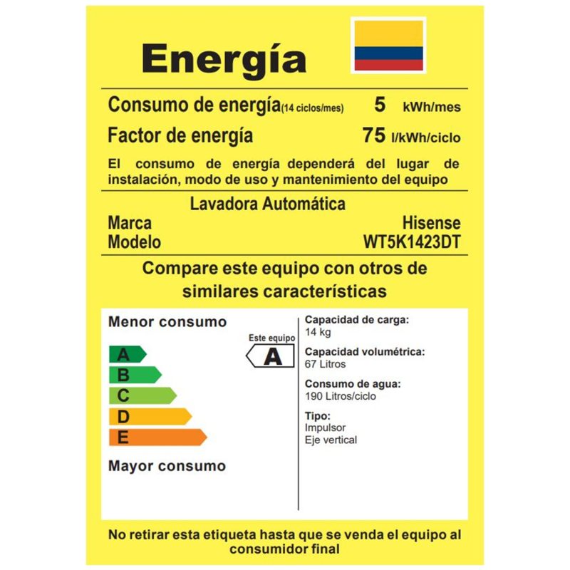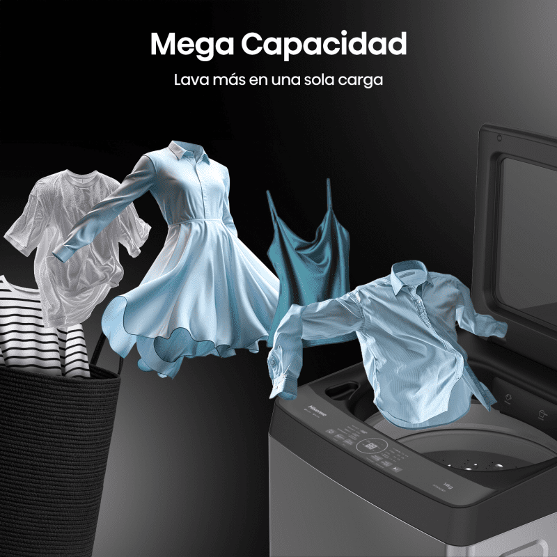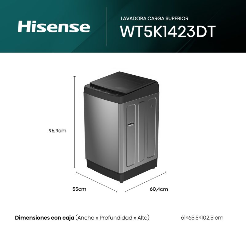 Diseñada para seguir el ritmo de tu día, la Hisense WT5K14 combina potencia, eficiencia y diseño inteligente en cada carga. Con 14 kg de capacidad, ofrece el balance ideal entre tamaño práctico y alto rendimiento, perfecta para hogares que buscan resultados superiores sin ocupar espacio de más. Con Motor DD Inverter que ofrece potencia silenciosa y duradera, acompañado de tecnologías como iBubble, Aqua Save y Air Dry para lograr resultados eficientes con menor consumo. Diseño moderno y funciones inteligentes que transforman el lavado en una experiencia más cómoda y eficiente.