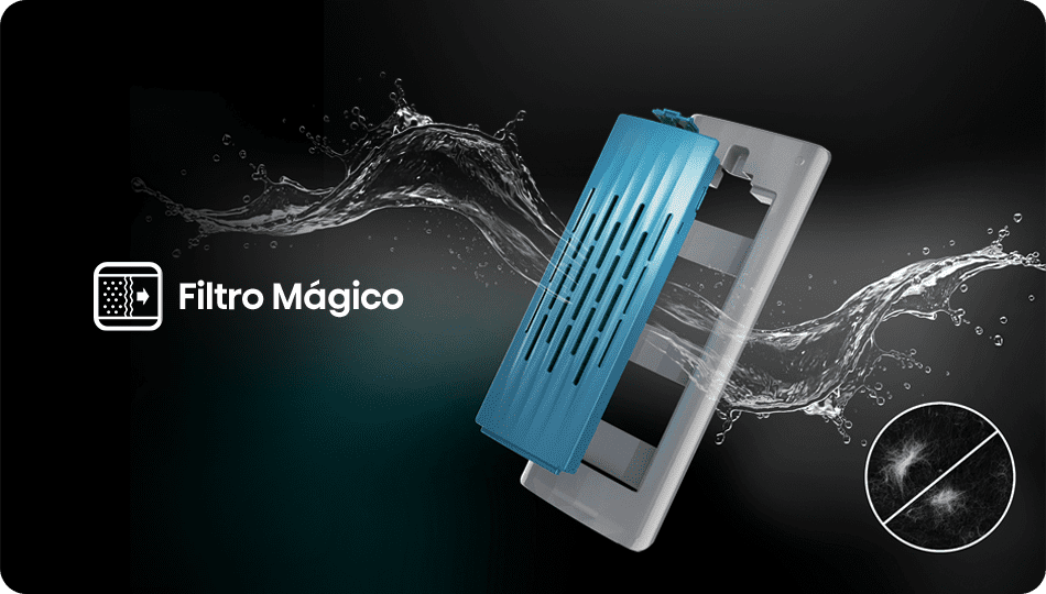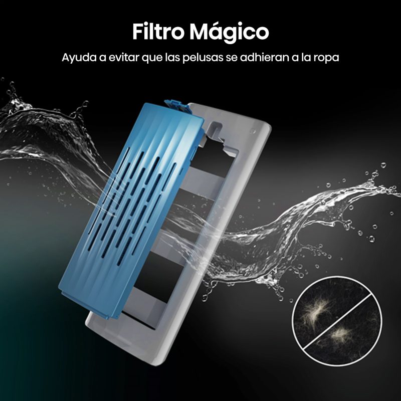 El sistema avanzado elimina fibras y residuos durante el lavado. Mejora la calidad de tus prendas y protege el rendimiento de la lavadora.