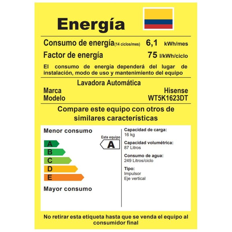 Lavadora Hisense carga superior WT5K 16 kg