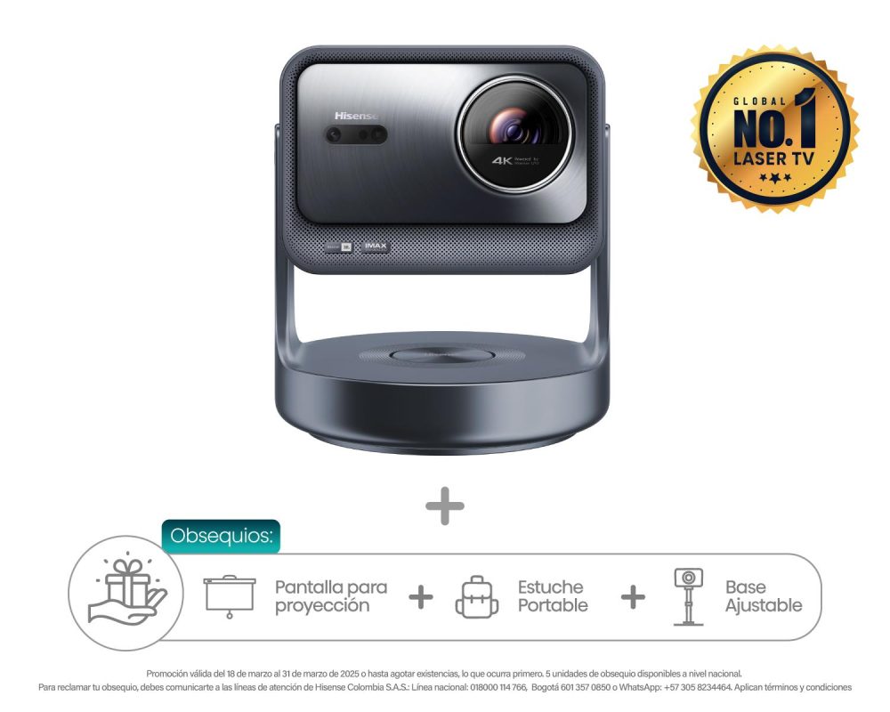 Convierte cualquier pared en una pantalla impresionante con el proyector láser Hisense C2. Disfruta de imágenes nítidas en 4K UHD, colores vibrantes y alto contraste para una experiencia cinematográfica envolvente. Su diseño compacto y tecnología láser garantizan mayor durabilidad y eficiencia. Ideal para películas, gaming y presentaciones con proyección ultra desde 65 hasta 300 pulgadas.