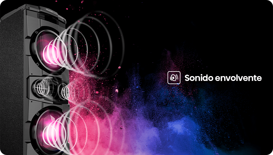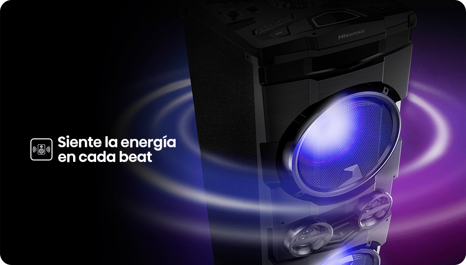 Dos subwoofers y tweeters integrados entregan graves potentes y agudos definidos. Cada canción se escucha con mayor dimensión, equilibrando cada frecuencia para llenar el espacio con matices y energía.