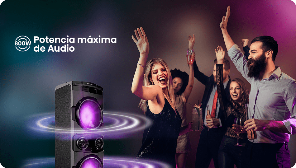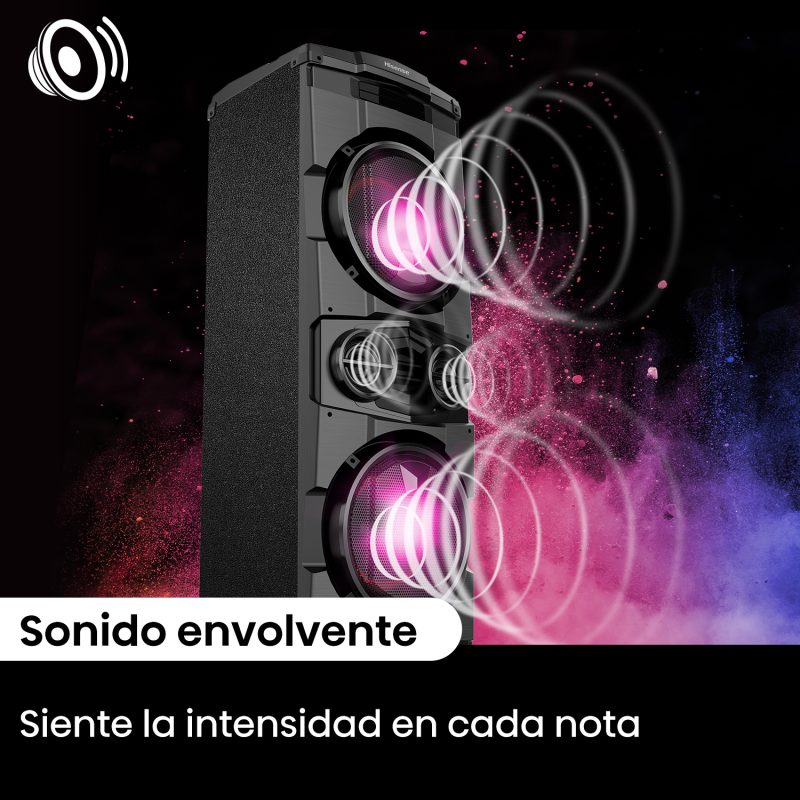 Con 800W de potencia, cada canción se vive con fuerza, claridad y profundidad. La celebración se transforma en un espectáculo vibrante.