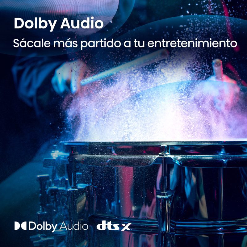 Audio Optimizado con DTS Virtual:X: La tecnología de audio simula un sonido 3D que parece rodearte (virtual surround). Esto amplifica los efectos y optimiza las voces, para que no pierdas detalle de los diálogos sin necesidad de parlantes adicionales.