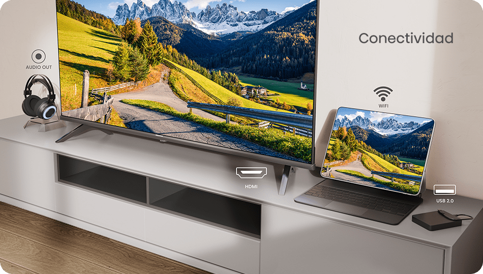 Conecta tus dispositivos sin problemas. Los puertos HDMI y USB te permiten sincronizar tus consolas de juegos, barras de sonido y mucho más.