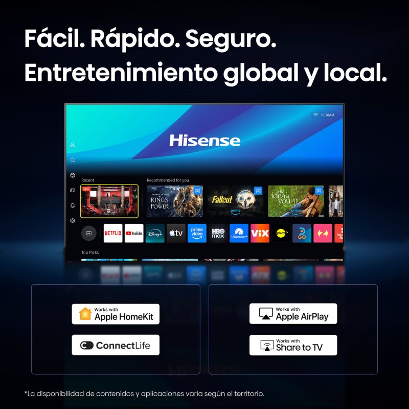 Descubre una nueva dimensión de color con tu televisor Hisense QD5SV. La tecnología QLED 4K Ultra HD ofrece colores más precisos, mayor brillo y un contraste definido que realza cada detalle. Con Dolby Vision™ y Dolby Atmos®, la imagen y el sonido se integran para crear una experiencia cinematográfica envolvente. La optimización inteligente mejora el contenido en tiempo real, elevando la resolución y la nitidez de forma automática. Diseño, tecnología y rendimiento en un televisor pensado para quienes buscan una experiencia superior en cada escena.