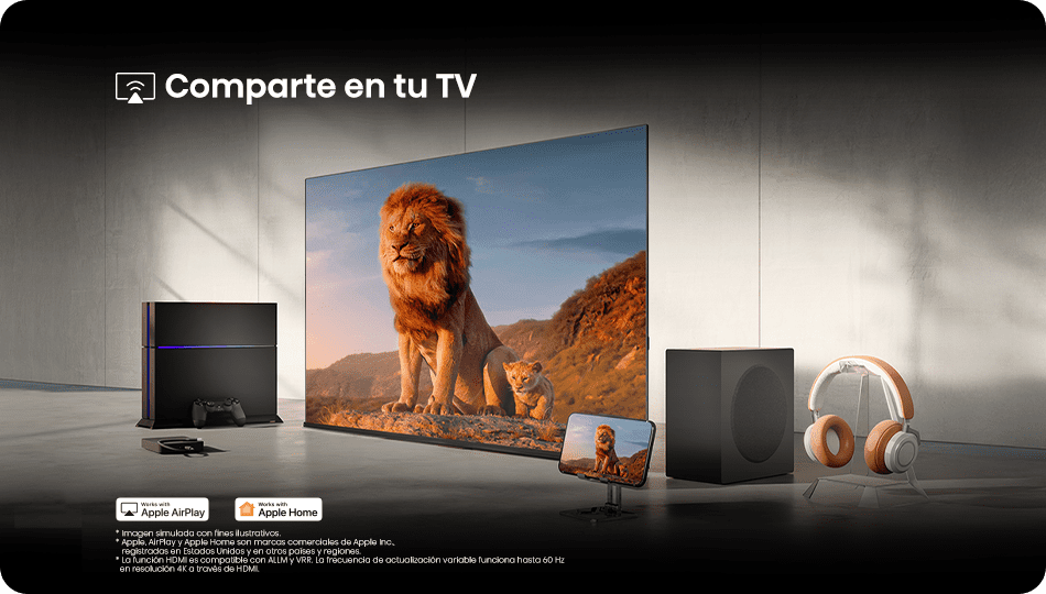 Conecta tus dispositivos sin problemas. Los puertos HDMI y USB te permiten sincronizar tus consolas de juegos, barras de sonido y mucho más.